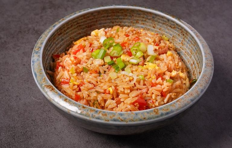 Arroz frito con huevo, pimientos, cebollín, jamón y salsa de soya. Agrega Pollo +$2 / Steak +$4 / Camarones +$4 Fried rice with egg, peppers, scallions, ham & soy sauce. Add Chicken +$2 / Steak +$4 / Shrimp +$4