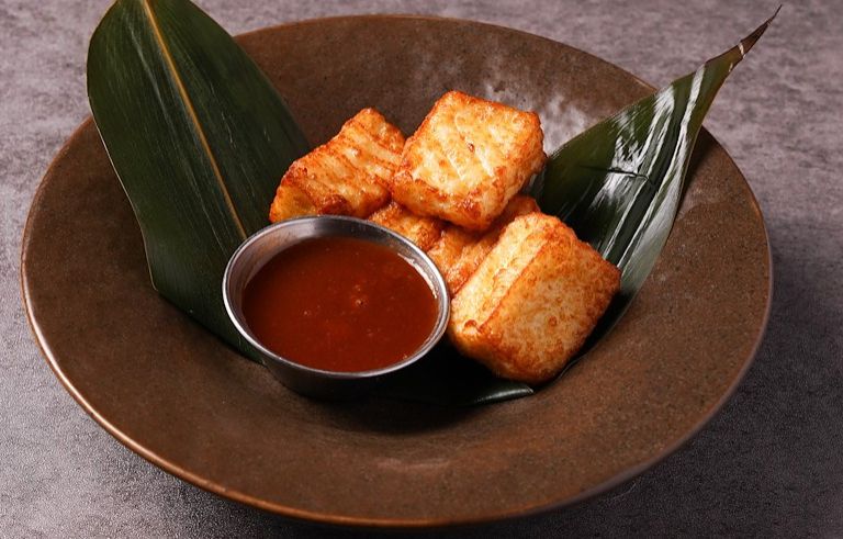 Queso dorado al punto perfecto, acompañado de una delicada salsa de guayaba. Golden fried cheese served with a smooth guava sauce.